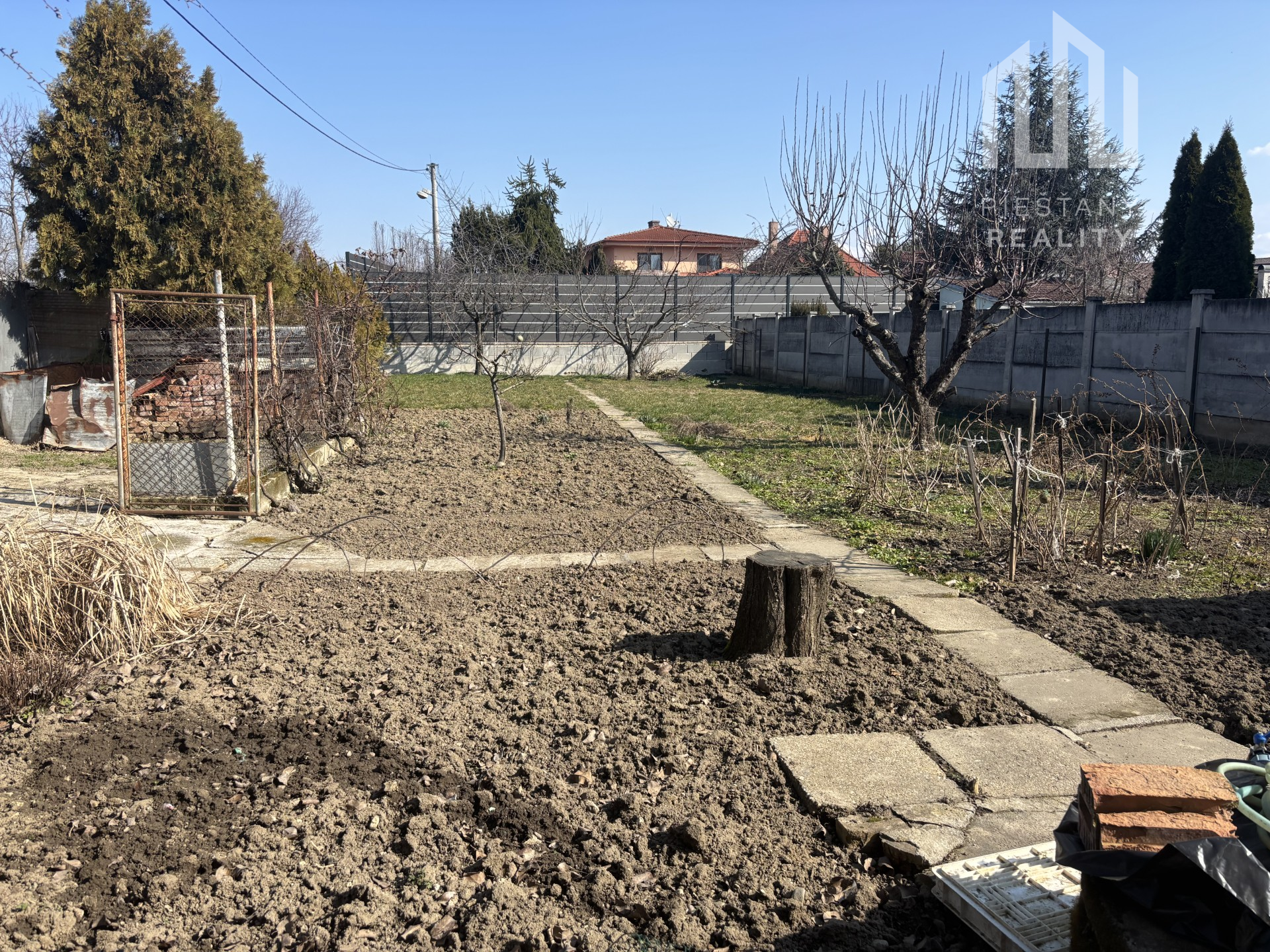 Veľký, rovinatý a slnečný pozemok poskytuje priestor pre oddychovú zónu, záhradu či ďalšie architektonické riešenia. Súčasťou je: