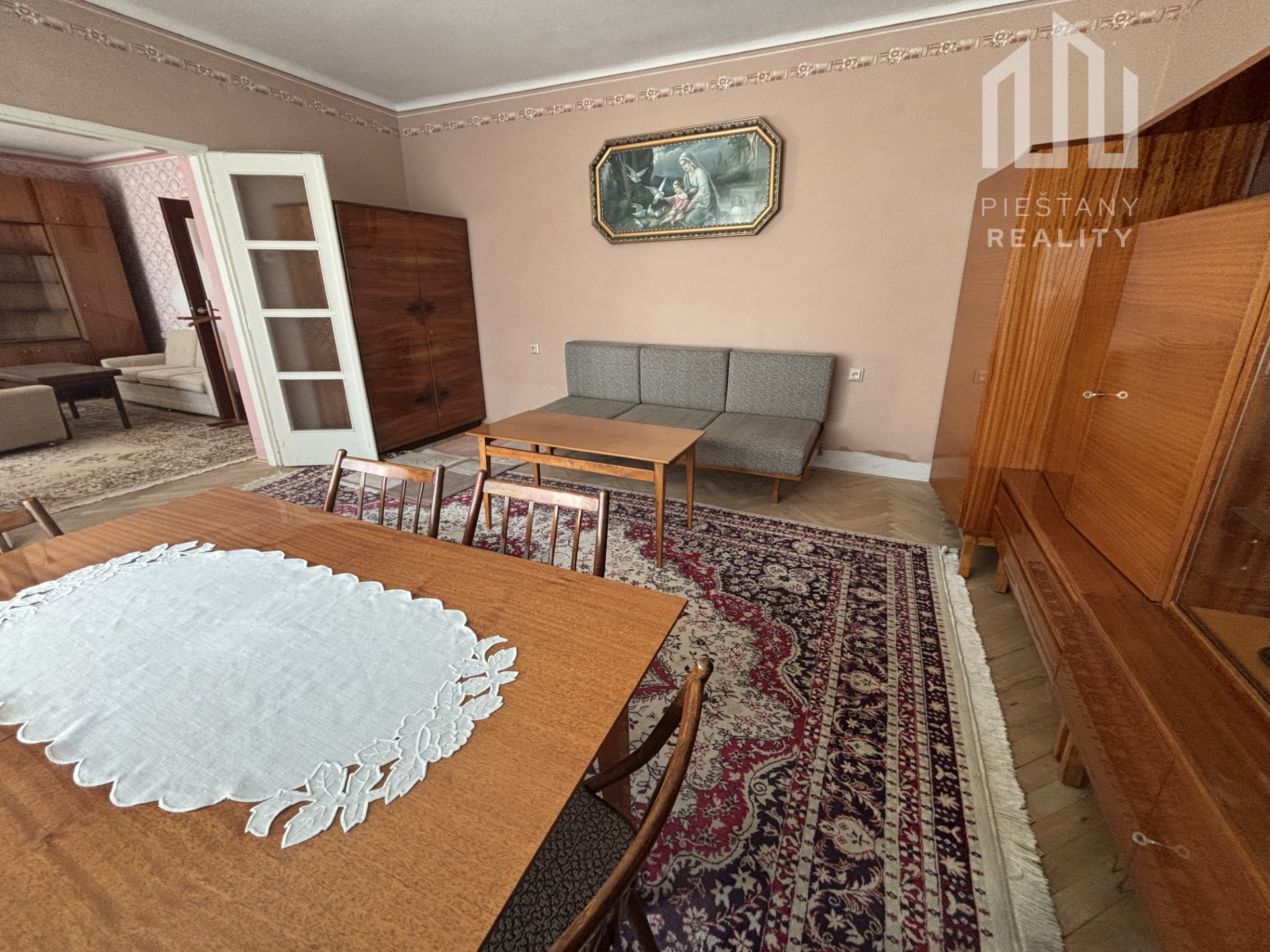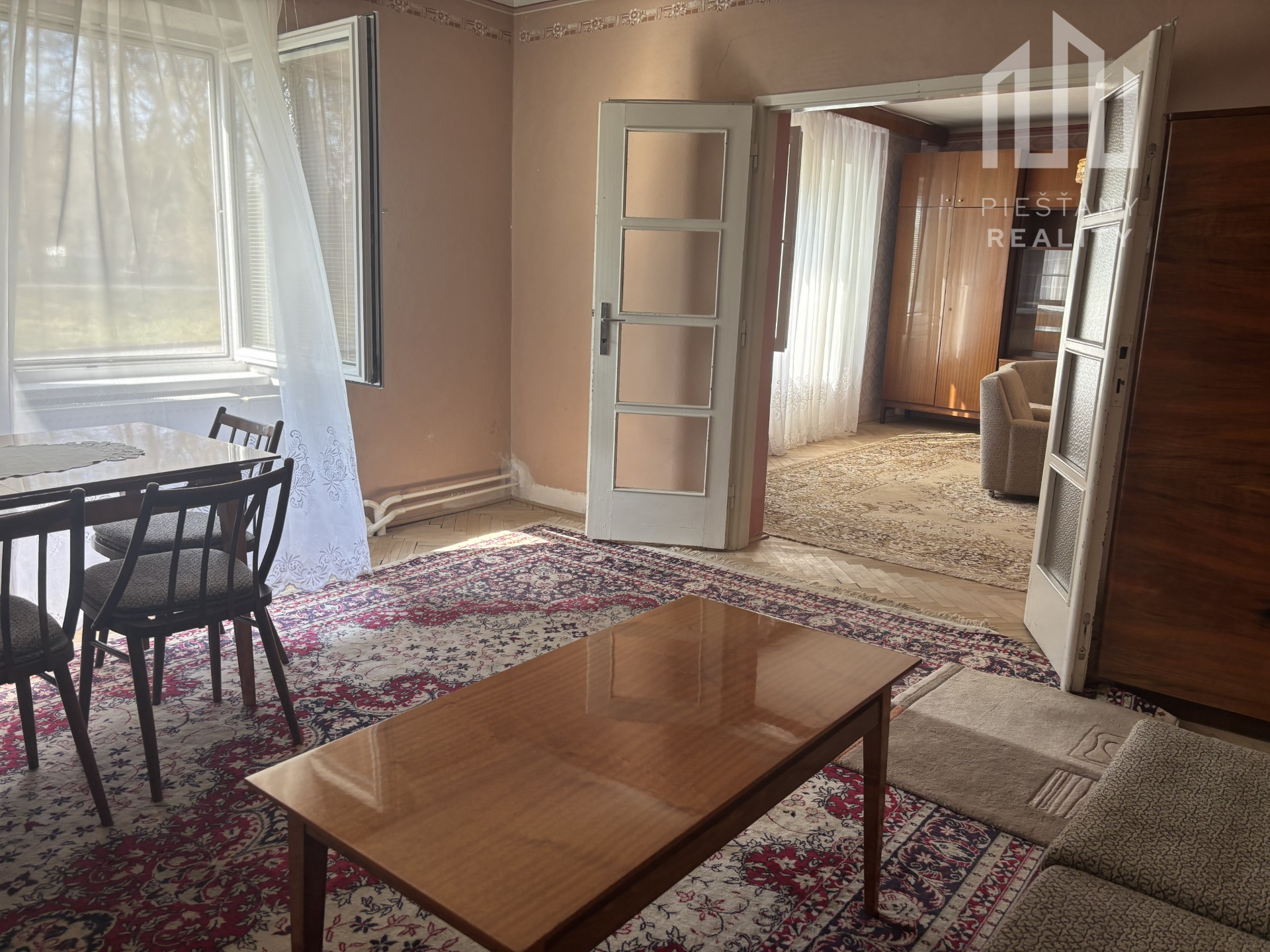 Interiér ponúka štyri priestranné izby, pričom dve z nich si zachovali pôvodné parkety a omietky – ideálne pre tých, ktorí ocenia noblesu tradičných materiálov. Ostatné miestnosti sú zrekonštruované s dôrazom na čisté línie a praktickosť.
